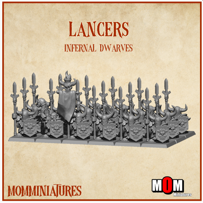 10 x Enanos infernales con lanza y escudo. Enanos infernales