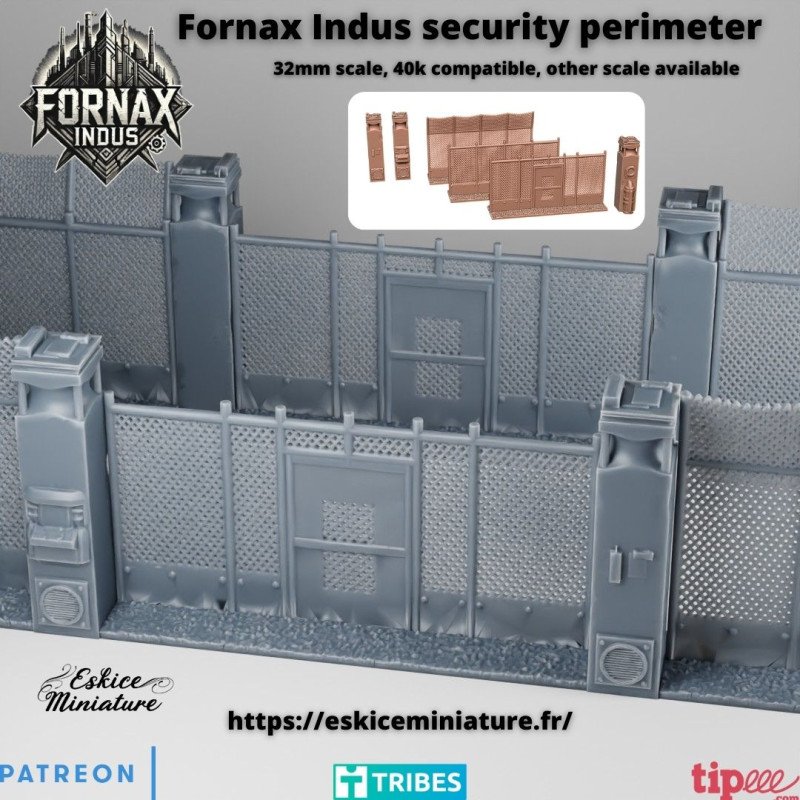 1 x wire mesh perimeter fence section. Scenery for sci-fi tables. Each section includes 1 pilar
