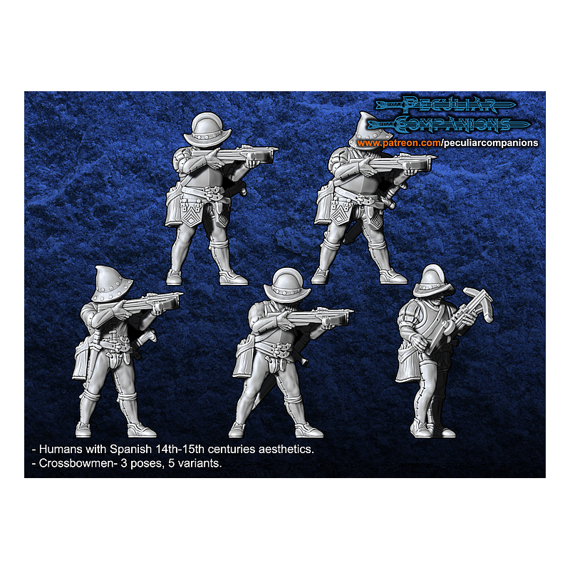 Crossbowmens del Tercio (Morriones) es una miniatura de fantasía impresa en 3D de Peculiar Companion, pensada para ejércitos y bandas de Tercio. Se trata de una miniatura de fantasía, ideal para coleccionismo, pintura y ejércitos temáticos.