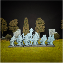 El grupo de mando contiene: 1 x Capitán 1 x Músico 1 x Portaestandarte
