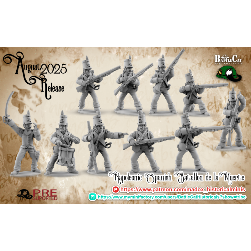 10 x Batallón de la Muerte español napoleónico. Incluye oficial, tambor y suboficial.