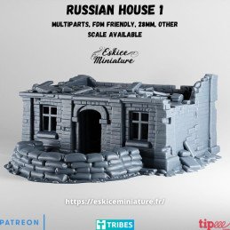 1 x casa rusa en ruinas. Edificio destruido del Frente del Este.