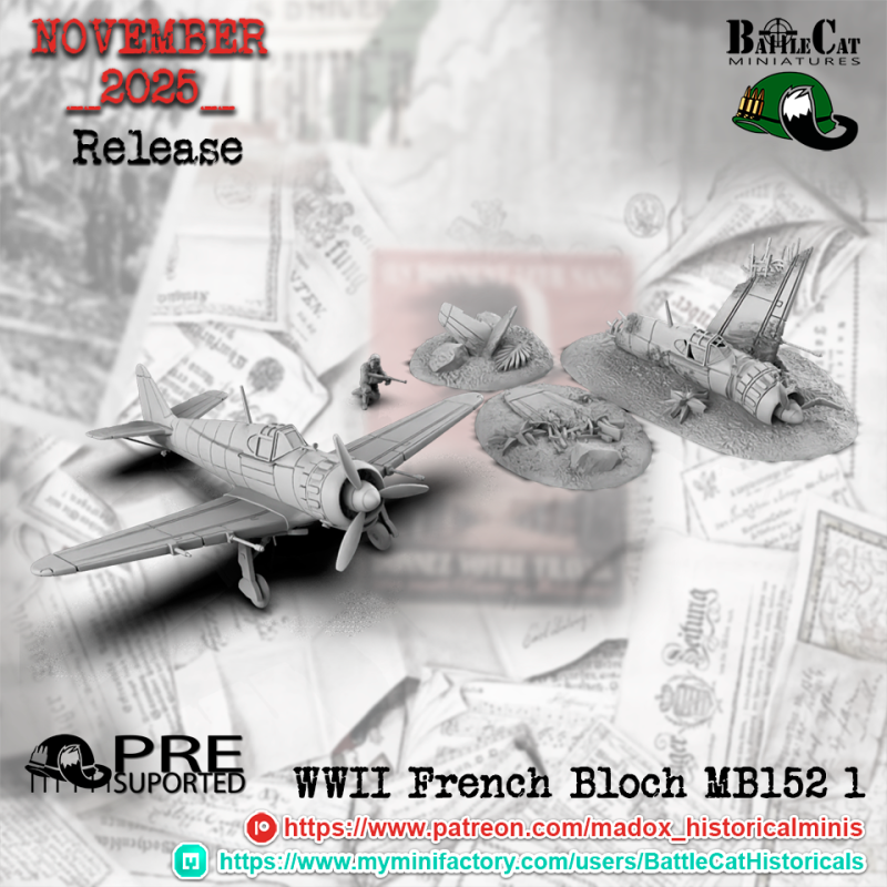 1 x Bloch MB 152 francés. Incluye 1 avión, 1 avión estrellado y 1 piloto.